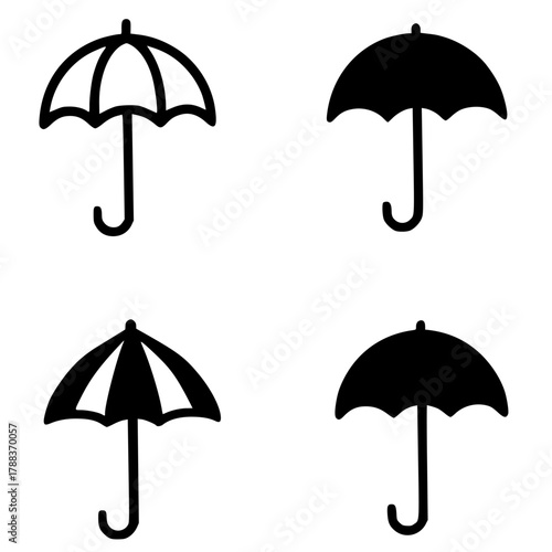 4 umbrella icons, black, transparent background