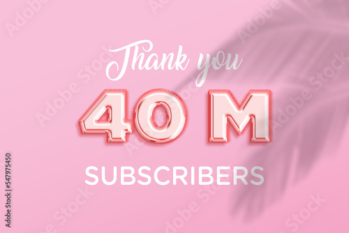 40 Million subscribers celebration greeting banner with Rose gold Design