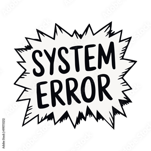 404 error page illustration with bold text, playful style, and a "SYSTEM ERROR" message