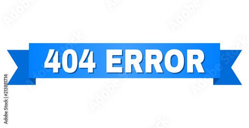404 ERROR text on a ribbon. Designed with white title and blue stripe. Vector banner with 404 ERROR tag.