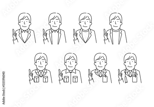 ジャケット、作業着、白衣を着た40から50代男性のシンプルな線画イラスト
