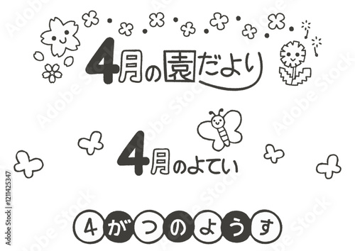 4月の白黒おたより素材・見出し3種セット