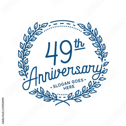 49 years anniversary design template. 49th anniversary celebration hand drawn logotype. Vector illustration.