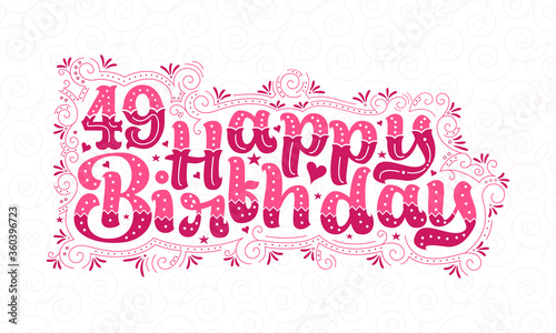 49th Happy Birthday lettering, 49 years Birthday beautiful typography design with pink dots, lines, and leaves.