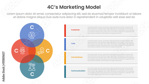 4C marketing model infographic 4 point stage template with venn diagram blending and vertical circle with container rectangle box for slide presentation