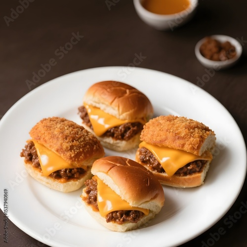 4k high quality Ai generative HD art photo realistic store business menu sell selling market restaurant western food eat cooking meat grilled stuffed sloopy joe bombs burger full buns cheese plate 4