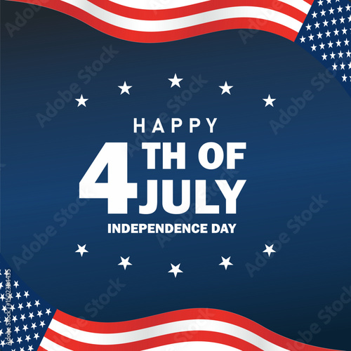 4th of July background with waving American flag and bunting decorations. Happy Independence Day USA vector illustration.