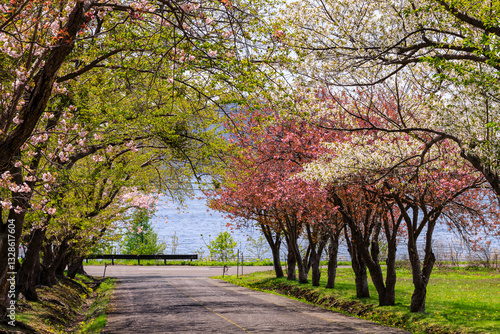 北海道洞爺湖町、烏帽子岩公園の桜並木【5月】