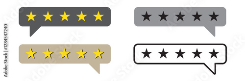 5 star ranking icon set. Five stars review rating vector illustration. Top quality rating symbol.