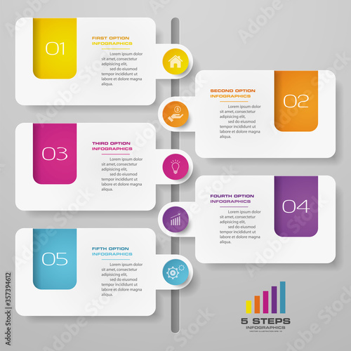 5 steps timeline infographic element. 5 steps infographic, vector banner can be used for workflow layout, diagram,presentation, education or any number option. EPS10.
