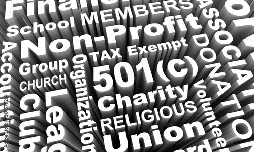501c Tax Exempt Group Organization Entity Charity Church Word Collage 3d Render Illustration