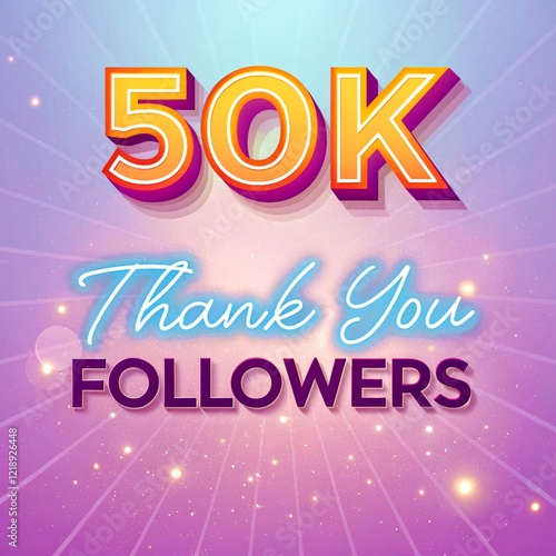 50k followers achievement thank you message with glowing outline effect, social media celebration post