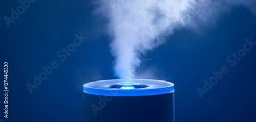 54. A high-tech humidifier with soft blue light and mist rising into the air