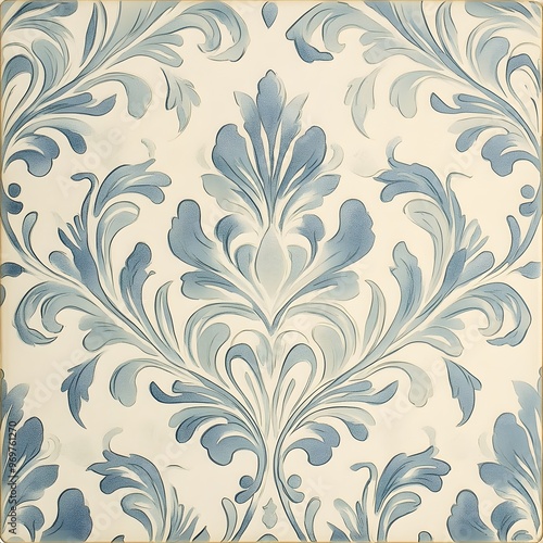 54. Elegant damask tile design with soft, swirling patterns in light hues