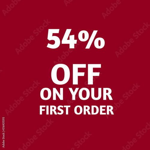 54% percent off on your first order vector art illustration with fantastic font and red background-color