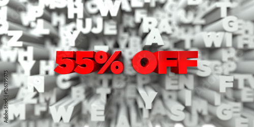 55% OFF - Red text on typography background - 3D rendered royalty free stock image. This image can be used for an online website banner ad or a print postcard.