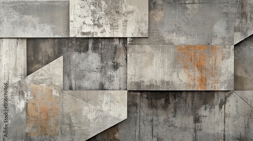 55.Abstract 3D wallpaper with a grunge texture, highlighting distressed surfaces and bold geometric forms. The design features overlapping layers of worn textures, creating depth and visual interest,