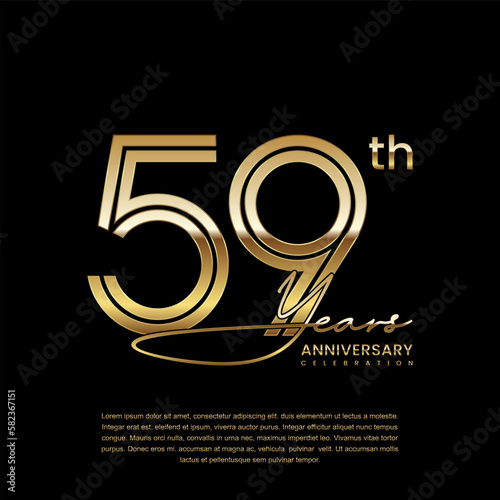 59th anniversary logo with gold color double line style. Line art design. Logo Vector Illustration