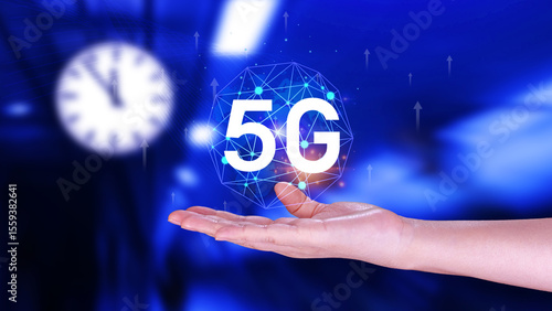 5G network concept, Business using with holographic digital globe with interconnected 5G symbols, 5G technology in modern business and communication, digital transformation.