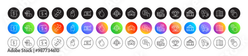 5g notebook, Buildings and Brand ambassador line icons. Round icon gradient buttons. Pack of Chemical formula, Dollar wallet, Bitcoin pay icon. Diamond, Carousels, Hydroelectricity pictogram. Vector