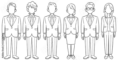 6人の匿名のビジネスパーソン ポーズのない男女のセット