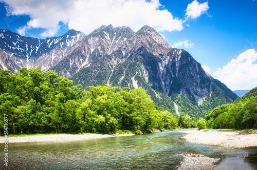 青い空に白い雲、さわやかな6月の風に吹かれて、新緑の美しい若葉を眺めながら憧れの上高地を散策