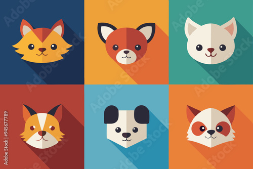 6 Adorable Animal Head Logos: Rabbit, Cat, Dog, Cow, Pig, Panda | Vector Icons
