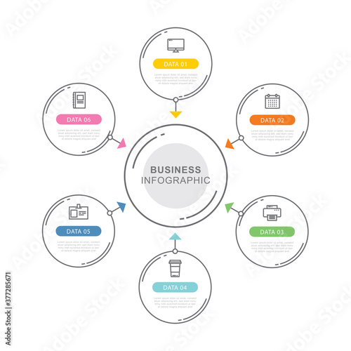 6 circle data timeline infographics template with thin line design. Vector illustration abstract background. Can be used for workflow layout, business step, banner, web design.
