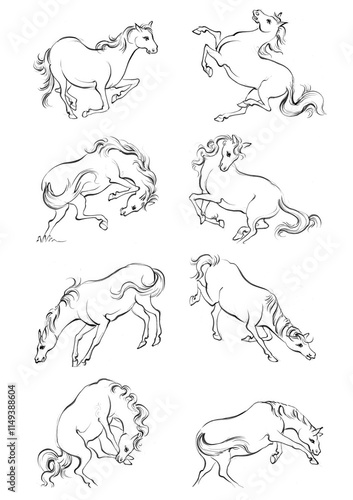6 Horse, a colouring book for kids, easy to colour, vector illustration, Vector, Annimals