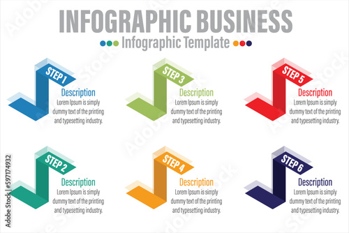 6 Step and Six Option colorful infographics elements. Vector illustration.