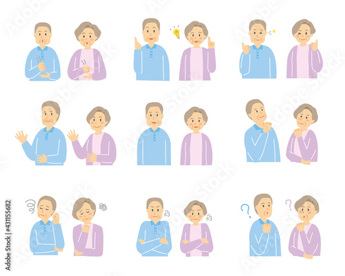 シニア ミドル 中年 夫婦 顔 表情 感情 喜怒哀楽 60代 70代