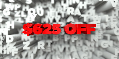 $625 OFF - Red text on typography background - 3D rendered royalty free stock image. This image can be used for an online website banner ad or a print postcard.