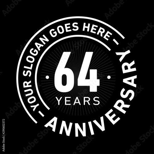 64 years anniversary logo template. Sixty-four years celebrating logotype. Black and white vector and illustration.