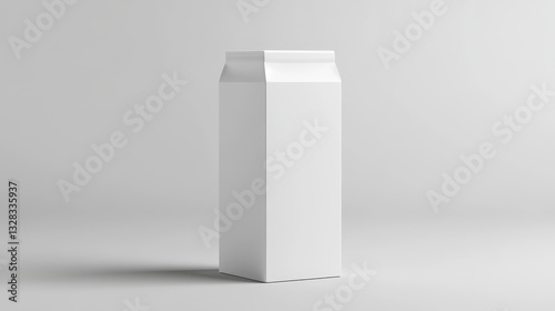 64.A white beverage carton package in a realistic vector style, with clean, symmetrical sides and minimal detailing, ideal for branding purposes. The design is straightforward, with soft lighting
