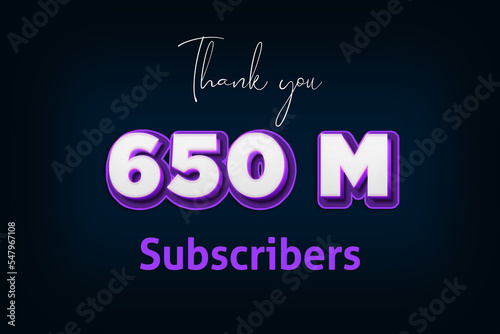 650 Million subscribers celebration greeting banner with Purple 3D Design