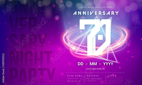 70 years anniversary logo template on purple Abstract futuristic space background. 70th modern technology design celebrating numbers with Hi-tech network digital technology concept design elements.