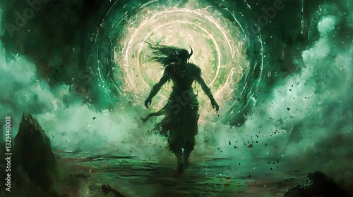 72. A spirit warrior stepping through a mystical portal into an unknown dimension