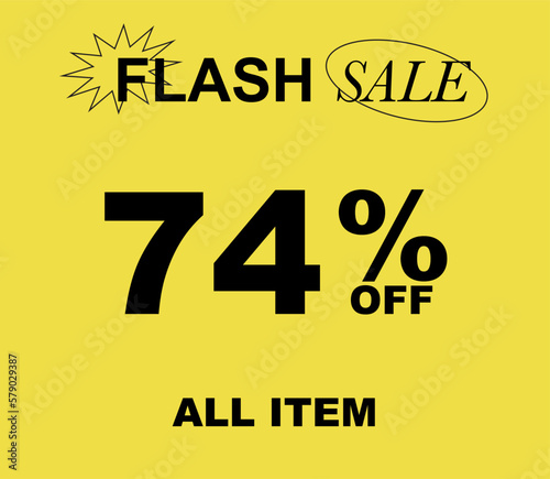 74% Flash sale Special Offer vector art illustration on yellow background. Eps 10