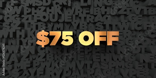 $75 off - Gold text on black background - 3D rendered royalty free stock picture. This image can be used for an online website banner ad or a print postcard.