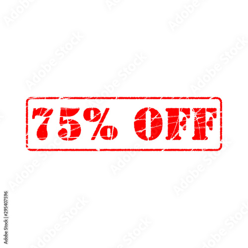 75% off on white background. seventy five Percent Off Promotional Advertising Banner. Special offer, great offer, sale. Label and Tag with stamp effect..