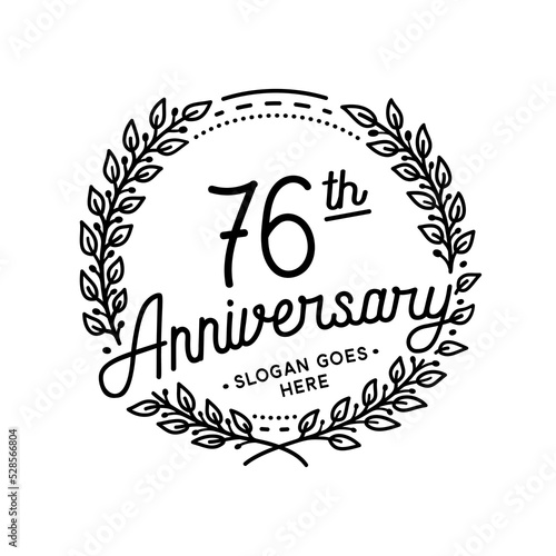 76 years anniversary celebrations design template. 76th logo. Vector and illustrations.