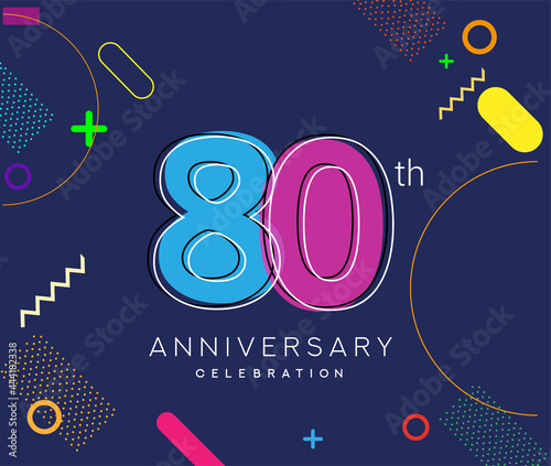 80th anniversary logo, vector design birthday celebration with colorful geometric background.