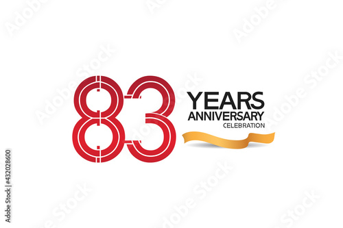 83 years anniversary template with red color number and golden ribbon. vector can be use for template, company special event and celebration moment
