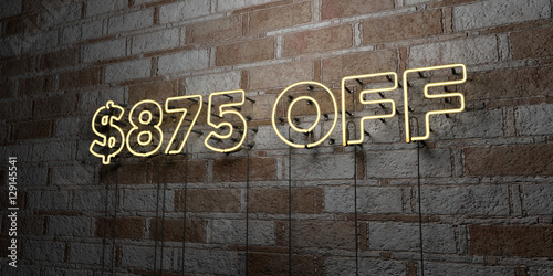 $875 OFF - Glowing Neon Sign on stonework wall - 3D rendered royalty free stock illustration. Can be used for online banner ads and direct mailers..