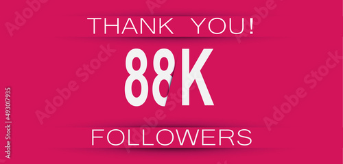88k followers celebration. Social media achievement poster,greeting card on pink background.