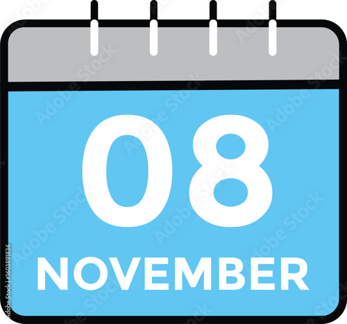 9 November, calendar date icon. 9 November Calendar Date for Deadlines or Appointment. Day, month. vector illustration.