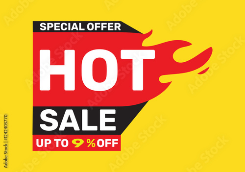 9 Percentage off HOT SALE on a bright yellow background vector illustration.