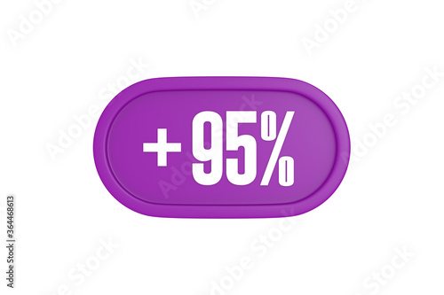 95 Percent increase 3d sign in purple isolated on white background, 3d illustration.