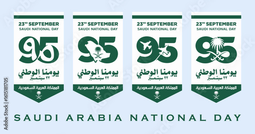 95 Saudi National Day. 23rd September. Arabic Text Translation: Our Saudi Arabia National Day. Kingdom of Saudi Arabia. Vector Illustration.