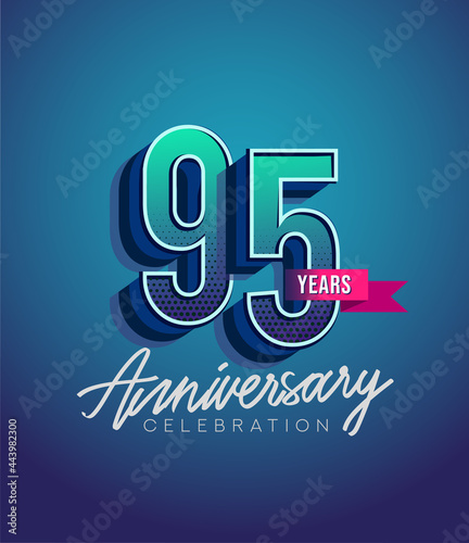 95th Anniversary Logo Design With Ribbon, Elegant Anniversary Logo With Blue Color, Design for banner and invitation card of anniversary celebration.